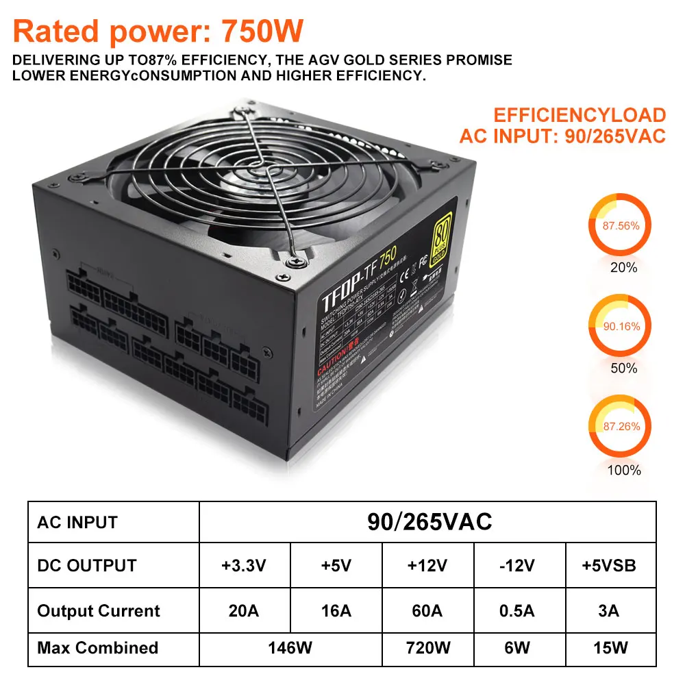 1PC 750w 110V/220V Full Module PC Power Supply Active Gold 80 Plus 24pin ATX New Fonte PFC Gamer Source Gaming PC Power Supply