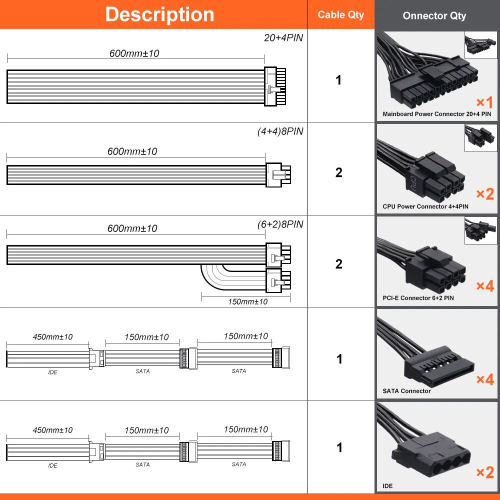 1 x Power Supply Cables