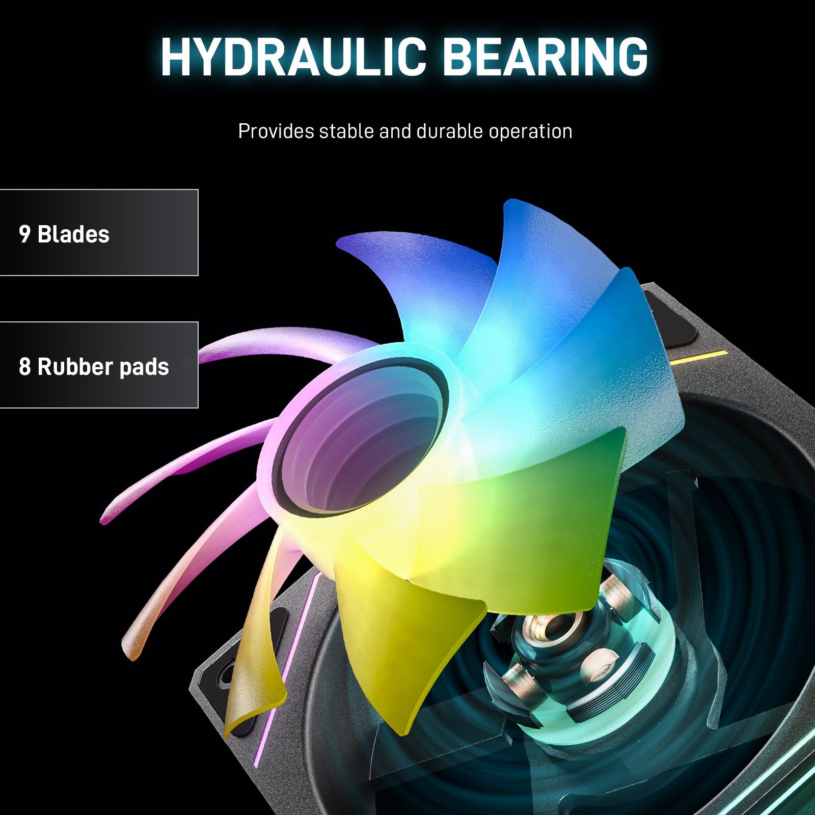 Adjustable Lighting Effect: ARGB lighting on fan blades and frame, creating stunning lighting effect for the PC chassis