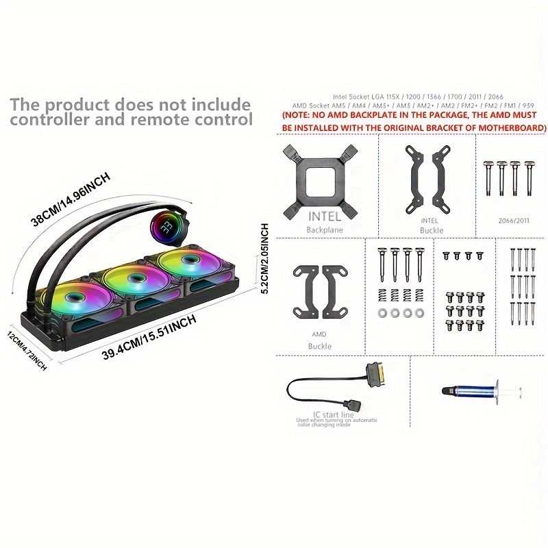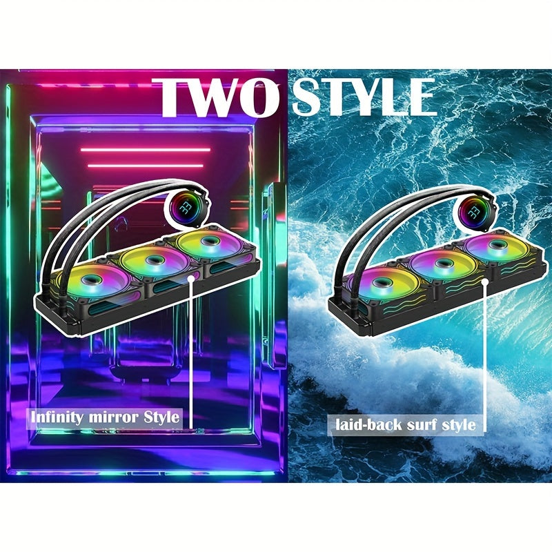 360MM Black ARGB Liquid CPU Water Cooling With 3 X 120mm ARGB PWM Fan, Temperature Display, Computer Water Cooling