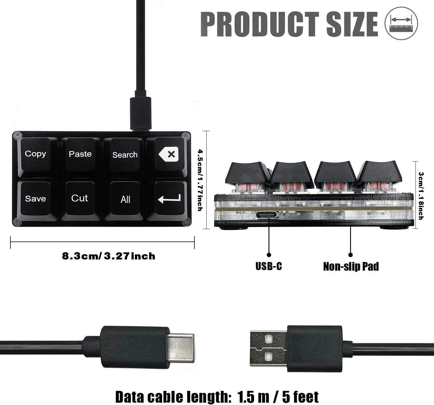 【Default function】 The default function of three keys is Copy,Paste,Search,Backspace,Save,Cut, All and Enter(Ctrl+C,Ctrl+V,Ctrl+F,Backspace,Ctrl+S,Ctrl+X,Ctrl+A,Enter).Plug and play,No software needed.Makes workflow super fast.