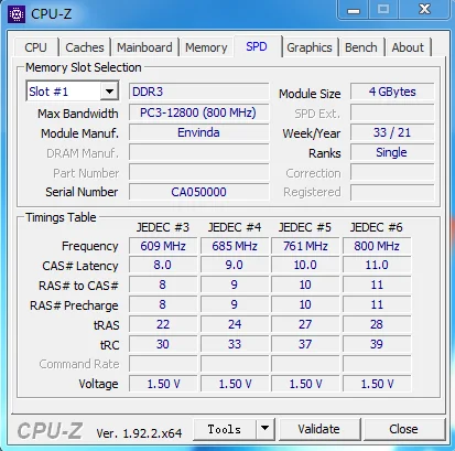 CAS Latency:1333MHz=CL9 1600MHz=CL11 2133MHZ=CL15 2400MHZ=CL17 2666MHZ=CL19 3200MHZ=CL22