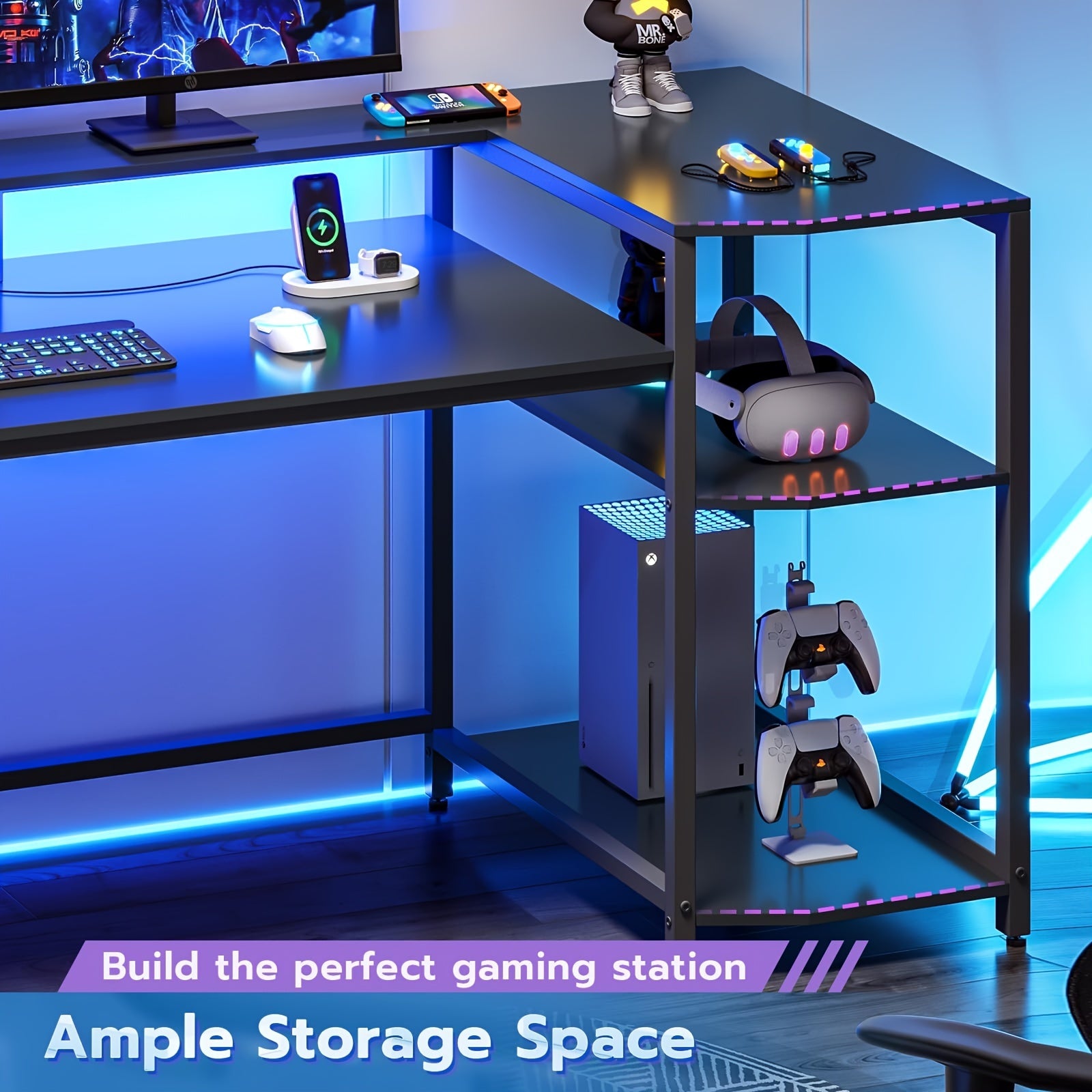The workstation features stunning RGB LED lighting that offers almost 60,000 color options. You can effortlessly change the color, brightness, and mode of the light strip using the remote or an app, enhancing your modern and stylish lifestyle.