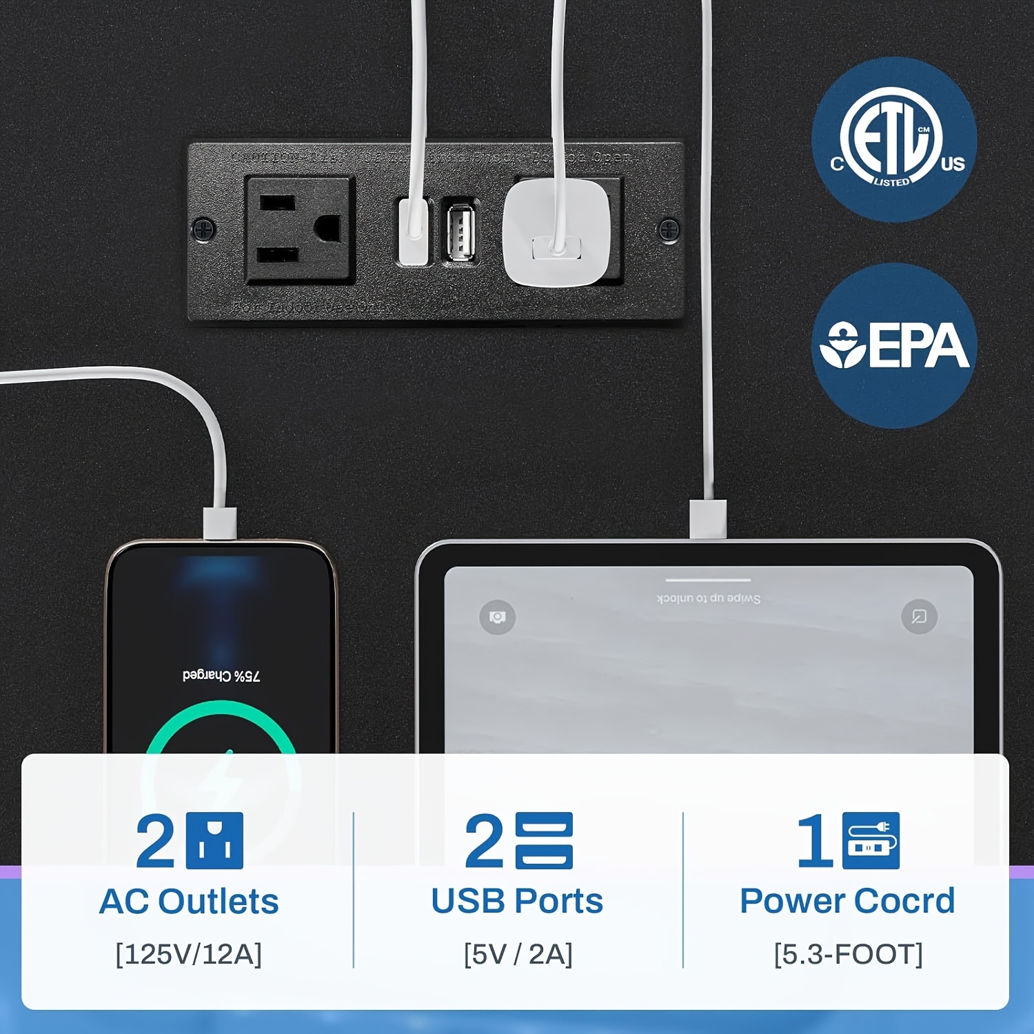 The gaming table features an integrated charging hub with two AC sockets and two USB ports, allowing for convenient charging of your laptops and smartphones.