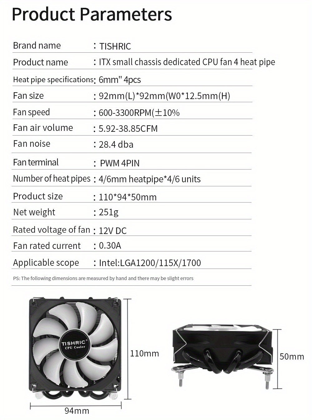 ITX CPU Cooler Fan RGB 4Pin PWM 4 Heat Pipe Tower Air Cooler Intel LGA1700 1150 1155 115X 1200 Processor Cooler Radiator ITX Small Chassis Dedicated CPU Fan 4 Heat Pipe Fan Speed 600-3300RPM ±