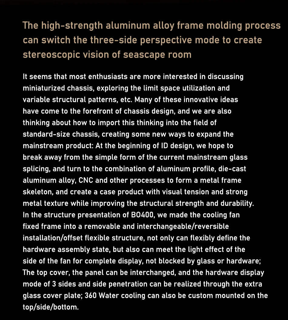 Jonsbo BO400 ATX Case Aluminum Seaview Room Chassis 10 Fan Slots Computer Game Main Case MINI-ITX/M-ATX Backboard Perspective PC