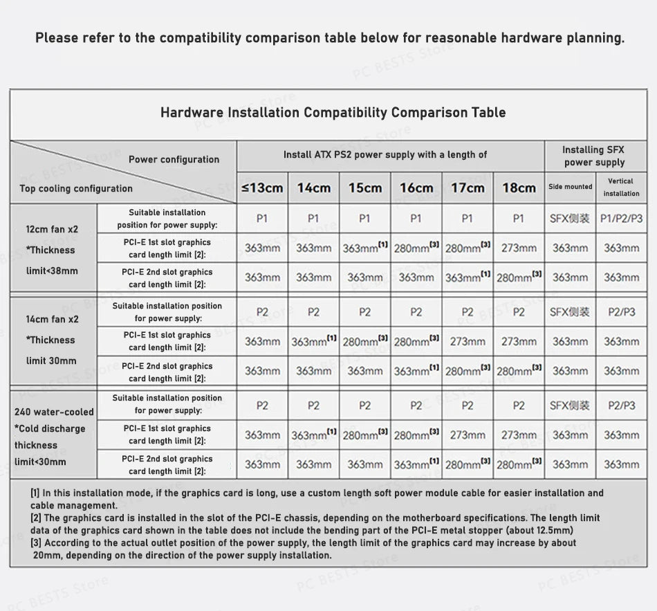 GPU Clearance:Up to 363mm,depends on other hardware configurations