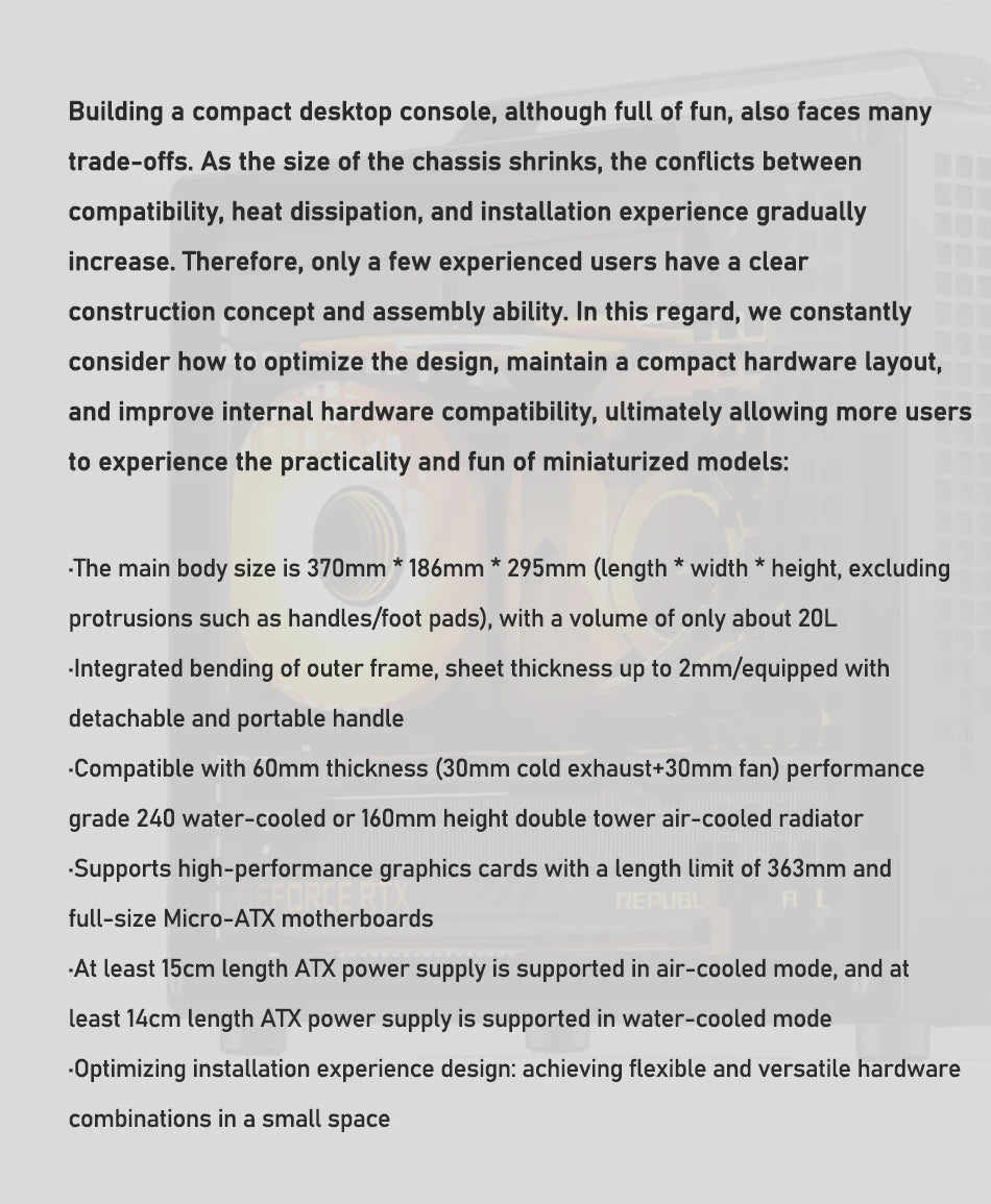 Jonsbo Z20 MATX ATX PC Case Chassis 20L Detachable Handle Case Support 240mm AIO Cooler Type-C Black Desktop Small Compact Case