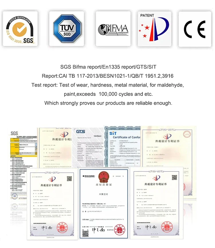 2.All product have SGS bifma report and we have our own company bifma test room; 3. 3-5 years warranty.we can say 0 cases of serious after-sale problem.