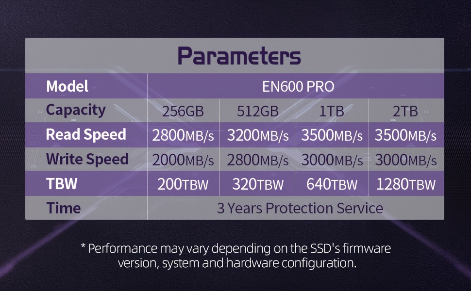 - HIGH SPEED TRANSMISSION - EDILOCA EN600Pro M.2 SSD adopts M.2 PCIe Gen3 x4 technology and is compatible with NVMe1.3 protocol. By configuring dynamic SLC cache technology to accelerate SSD read and write performance, the maximum read speed is up to 3,500MB/s, and the maximum write speed is up to 3,000MB/s, effectively maintaining the high-speed operation and stability of SSD.